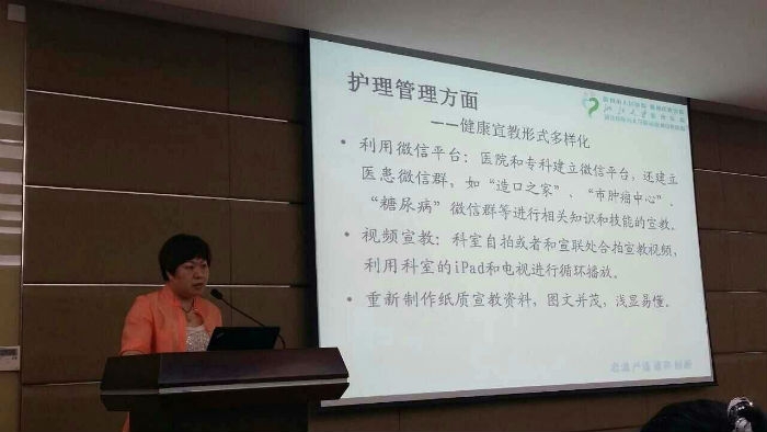 我院護(hù)理部主任徐勤容作為合作醫(yī)院的優(yōu)秀學(xué)科代表上臺(tái)做經(jīng)驗(yàn)介紹