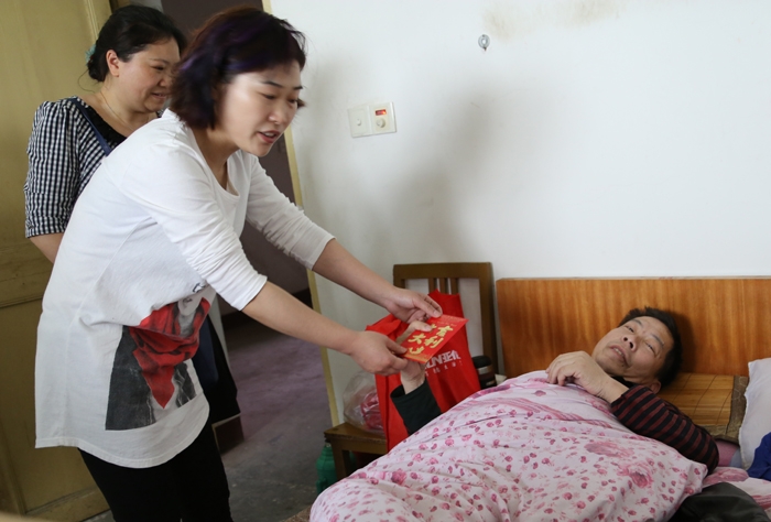 4月29日,我院重癥監(jiān)護(hù)室的醫(yī)護(hù)志愿者一行來到龍游縣湖鎮(zhèn)鎮(zhèn),看望孝心少年吳云飛和他癱瘓在床的父親,并與其結(jié)成愛心幫扶對子。