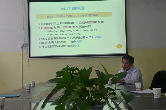 4月16日,國際著名腫瘤學專家、中國抗癌協(xié)會大腸癌專業(yè)委員會主任委員、浙江大學腫瘤研究所所長、浙江大學教授、博士生導師張?zhí)K展教授來到我院腫瘤診治中心參與了大腸癌MDT討論,并為腫瘤中心成員帶來了《全國結直腸癌多學科綜合治療先進技術示范推廣工程技術方案》一課。