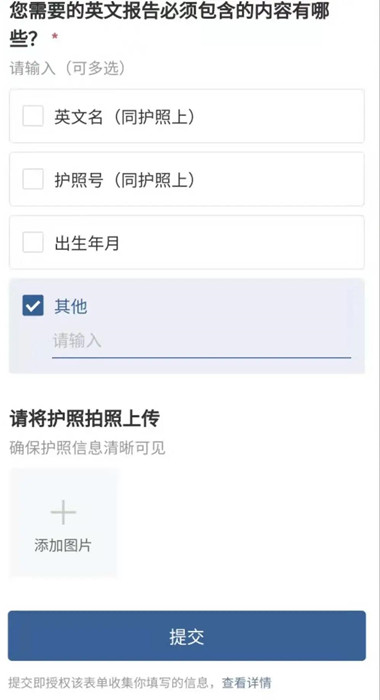 3、根據(jù)提示,準(zhǔn)確填寫個人信息,并上傳護照照片。如有其它附加要求,在其它選項上打勾,并詳細(xì)寫明內(nèi)容。(每個國家的入境政策都不一樣)。