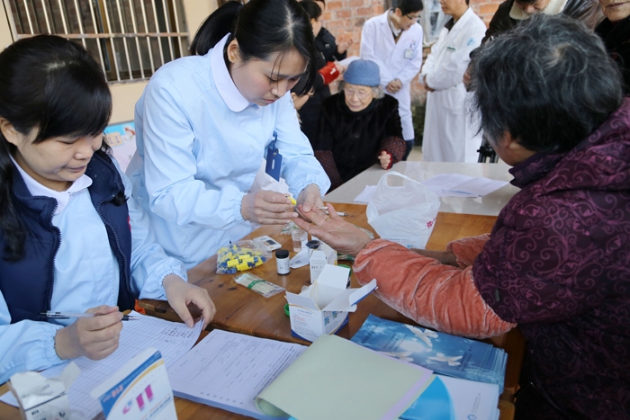 ??? 醫(yī)護(hù)人員向糖尿病患者做《糖尿病飲食治療》、《糖尿病運(yùn)動(dòng)治療》的健康知識(shí)講座,分發(fā)健康宣教資料并進(jìn)行免費(fèi)血糖和血脂監(jiān)測(cè)。