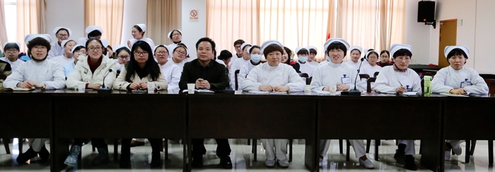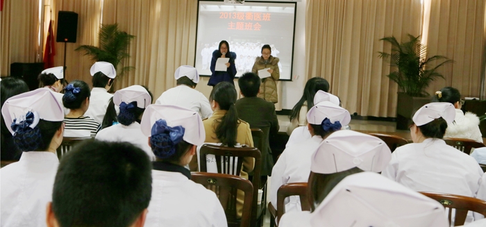 ??? 1月9日下午,2013級“衢醫(yī)班”以“做護士,你準備好了嗎?”為主題的班會在我院12樓會議室舉行。衢州職業(yè)技術學院醫(yī)學院書記余文富、我院護理部主任徐勤容等參加了班會活動。