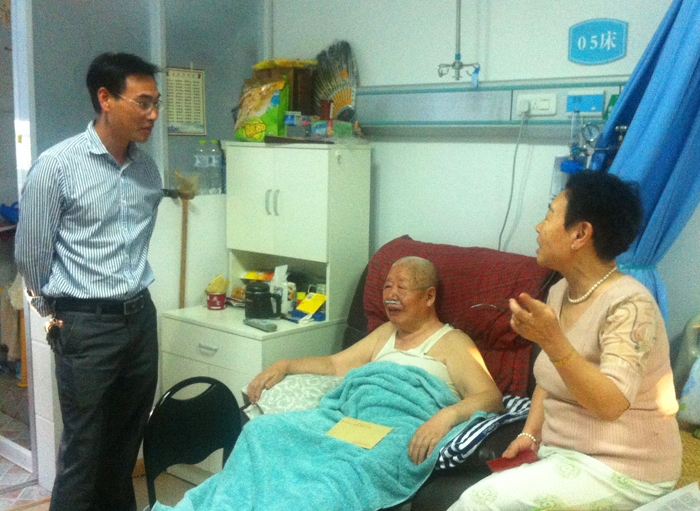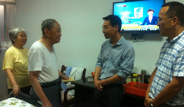 我院黨委書記徐天才走訪慰問離休干部 文章來源:退管辦 作者:楊玲 點擊數(shù):4939 更新時間:2014-10-10 ??? 10月9日下午,我院黨委書記徐天才攜紀委監(jiān)察室主任徐哲鋒、人事處處長陳俊,走訪慰問了我院離休干部,向他們送上祝福,祝他們身體健康。 ? ? ? ? ? 上一篇: 醫(yī)院舉辦2008年度中層干部培訓班 下一篇: 杭州市衛(wèi)生計生委來我院調(diào)研“杭衢山海協(xié)作”工作
