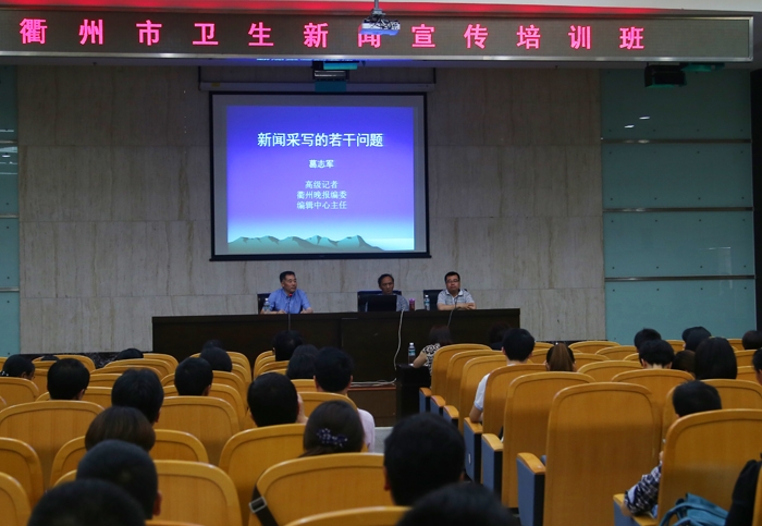 ??? 培訓(xùn)班邀請了《衢州晚報(bào)》編委、編輯中心主任葛志軍及衢州新聞網(wǎng)主編汪江漁就新聞要素的編輯、新聞素材的采寫、發(fā)掘新聞的方式、通訊員如何報(bào)道醫(yī)療衛(wèi)生類新聞、衛(wèi)生新聞的發(fā)現(xiàn)與捕捉等內(nèi)容進(jìn)行了授課,并與參會(huì)人員一起探討如何提高正面報(bào)道的宣傳效果、突發(fā)事件的應(yīng)對和報(bào)道網(wǎng)絡(luò)輿情監(jiān)測的要點(diǎn)及注意事項(xiàng)。