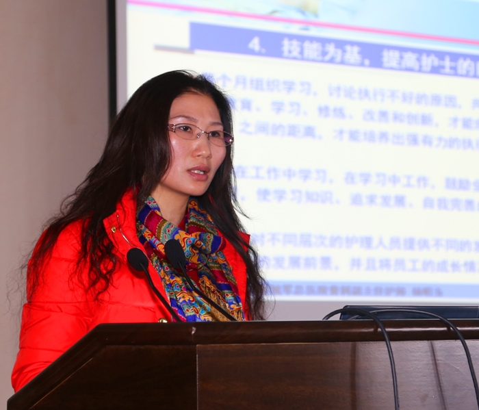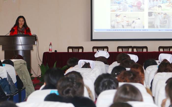 ??? 新年伊始,春意濃濃。2月5日下午,中國人民解放軍總醫(yī)院骨科護(hù)士長楊明玉大校應(yīng)邀來我院作《如何提升護(hù)士長的執(zhí)行力》的專題講座。局領(lǐng)導(dǎo)、院領(lǐng)導(dǎo)及市本級各家醫(yī)院護(hù)理部主任、護(hù)士長、責(zé)任護(hù)士等200余人參加了聽課。