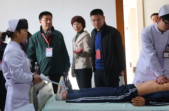 ??? 匯報會結(jié)束后,專家組在周見副院長、程科云處長的陪同下考察了醫(yī)院教學(xué)條件,參觀醫(yī)院示教室、學(xué)術(shù)報告廳、臨床技能考培中心,并對婦產(chǎn)科和內(nèi)科教研室的教學(xué)材料進行了檢查,現(xiàn)場觀摩了呼吸內(nèi)科教學(xué)查房,肯定了我院對教學(xué)工作扎扎實實、認真負責(zé)。