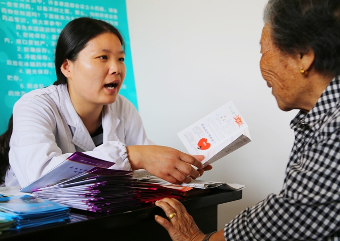 ?? “奶奶,您拿一份小冊子吧!是關(guān)于預(yù)防高血壓、糖尿病的?!痹谕ごㄉ鐓^(qū)的村委會活動中心里,我院青年文明號志愿者王君親切地把健康宣教小冊子遞給居民。