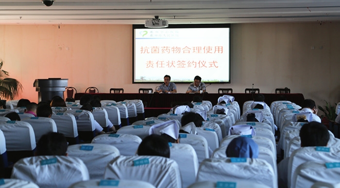 ??? 為進一步鞏固醫(yī)院抗菌藥物臨床應(yīng)用專項整治活動成果,促進抗菌藥物合理使用,有效控制細菌耐藥,根據(jù)衛(wèi)計委《抗菌藥物臨床應(yīng)用管理辦法》和《2013年全國抗菌藥物臨床應(yīng)用專項整治活動方案》要求,8月6日下午,我院在門診五樓學術(shù)報告廳舉行抗菌藥物臨床合理應(yīng)用責任狀簽訂儀式。