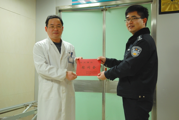 浙江省見義勇為基金會慰問余功敏 文章來源:宣聯(lián)處 作者:王倩倩 點擊數(shù):4582 更新時間:2013-02-26 ??? 在偷搶事件面前,你是轉(zhuǎn)身離開?還是圍觀者?又或者會出手相助呢?今日上午,受浙江省見義勇為基金會委托,衢州市公安局派人趕赴我院,看望慰問麻醉科余功敏醫(yī)師,代表浙江省人民政府和浙江省公安廳對他勇斗歹徒的義舉進行表彰,并頒發(fā)了見義勇為獎金3000元。 ? 上一篇: 醫(yī)院舉辦2008年度中層干部培訓班 下一篇: 杭州市衛(wèi)生計生委來我院調(diào)研“杭衢山海協(xié)作”工作