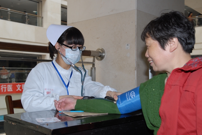 新舉措促服務(wù) 文章來源:宣聯(lián)處 作者:徐哲鋒 點擊數(shù):4601 更新時間:2012-04-25 ??? 從4月23日始,在我院心內(nèi)科診室門口,每天都有一名掛著“志愿者”牌子的護(hù)士給即將就診的患者量好血壓并記錄在患者的病歷上。此舉分擔(dān)了醫(yī)生為患者逐個量血壓的工作,使醫(yī)生騰出更多的時間、精力與患者交流,又可以縮短患者就診等候時間。這是我院優(yōu)化門診就醫(yī)流程,方便患者的一項新舉措。 上一篇: 醫(yī)院舉辦2008年度中層干部培訓(xùn)班 下一篇: 杭州市衛(wèi)生計生委來我院調(diào)研“杭衢山海協(xié)作”工作