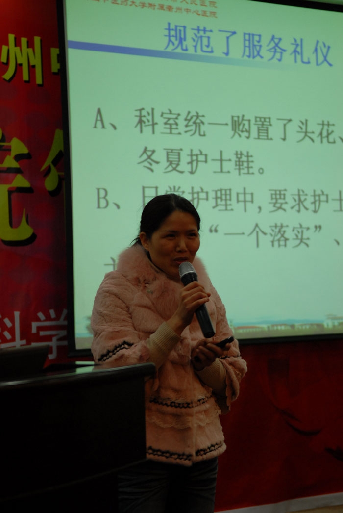 本次講壇,10名來自護(hù)理崗位的護(hù)士登臺與在座的300余聽眾分享了各自科室開展優(yōu)質(zhì)護(hù)理活動的經(jīng)驗、心得、成果,就開展優(yōu)質(zhì)護(hù)理過程中遇到的困惑進(jìn)行了交流。與會的護(hù)士表示將再接再勵,提高優(yōu)質(zhì)護(hù)理水平,達(dá)到“患者滿意、社會滿意、政府滿意”的目標(biāo)。