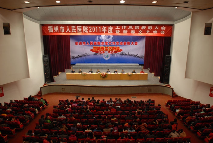 1月13日,我院在市工人文化宮舉行“2011年度年終總結(jié)表彰大會(huì)暨新春文藝晚會(huì)”。市衛(wèi)生局局長(zhǎng)陳根成、副局長(zhǎng)周衛(wèi)華應(yīng)邀出席會(huì)議,院長(zhǎng)徐周佳,黨委書(shū)記徐天才,副書(shū)記蔣一鳴,副院長(zhǎng)毛力非、吳善水、周見(jiàn)及醫(yī)院廣大職工也參加了會(huì)議。徐天才書(shū)記主持會(huì)議。