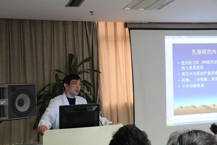 市人民醫(yī)院腫瘤外科舒敬德主任首先作《乳腺癌防治及康復(fù)》講座。舒主任介紹了乳腺癌的預(yù)防、診治,并重點(diǎn)從心理、鍛煉、飲食等方面講解了康復(fù)的意義和方法。講座使病友較全面地了解了乳癌防治及康復(fù)知識(shí)。