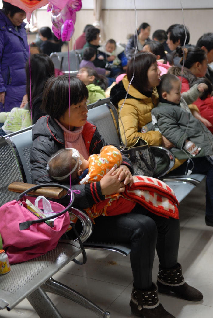 近段時(shí)間,受寒冷天氣影響,每天來我院兒科門診就診的患兒達(dá)400余號,晚上兒科急診近150號。兒科四個(gè)診室全部開診,延遲下班,依然難敵源源不斷的患兒。輸液大廳內(nèi)孩子扎堆。前來就診的患兒主要是呼吸道感染、感冒、腹瀉等疾病。