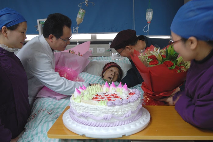 耄耋老人住院 醫(yī)護(hù)陪伴過生日