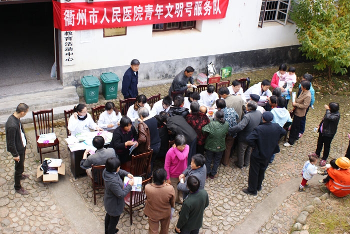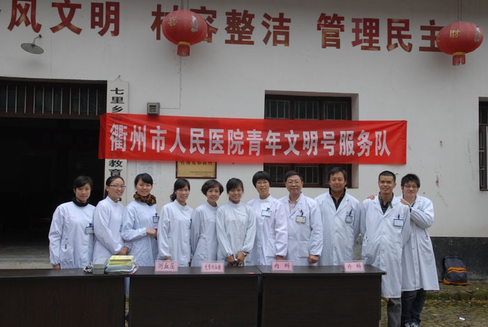 11月30日,我院省級青年文明號——急診科醫(yī)護(hù)一行11人來到柯城區(qū)七里鄉(xiāng)上村村,為當(dāng)?shù)匕傩樟x診。