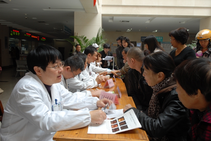 原來我院農(nóng)工黨支部為配合農(nóng)工黨市委會慶祝第23屆中國“國際科學(xué)與和平周”,特組織專家開展為群眾義診活動。現(xiàn)場的消化科專家仔細(xì)分析咨詢者手持的胃鏡單、B超單,告之胃腸道疾病的原因、治療方案、飲食調(diào)養(yǎng);藥劑科專家詳細(xì)回答咨詢者的用藥困惑,藥物的配伍禁忌等;婦科專家耐心回答前來咨詢的女性的心中疑問:什么是更年期,如何使用激素替代,卵巢保養(yǎng)有無功效等;內(nèi)分泌專家還就高脂、高糖咨詢者如何進(jìn)行運(yùn)動鍛煉、怎樣正確服用降糖藥、如何檢測血糖、血脂等一一進(jìn)行指導(dǎo);眼科專家為病人仔細(xì)檢查眼底和視力,告知前來咨詢者寒潮來臨時如有眼角出血,警惕高血壓、腦出血等;護(hù)理專家為100余名群眾測血壓,發(fā)放戒煙、冠心病預(yù)防、營養(yǎng)知識等宣傳資料,提醒高血壓者及時到??凭驮\,建議高血壓者定期檢測等?;顒蝇F(xiàn)場人群攢動,群眾滿口稱贊:一進(jìn)醫(yī)院就能與這么多專家面對面,了解這么多醫(yī)學(xué)知識,真好!???????????????????????????????????????????????????????