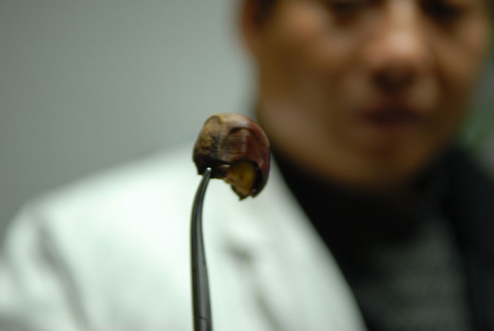 最后,蘭主任改用食道鏡下用帶齒的食道異物鉗,把完整的板栗打開一個(gè)缺口,鉗住板栗一塊有韌性的外殼慢慢取出,整個(gè)過程花了半個(gè)多小時(shí)。經(jīng)過一天的住院觀察休息,16歲的少年已于1月3日出院。