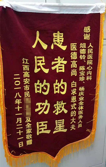 此外,沈先生在出院當(dāng)天還特別獻(xiàn)上了一面錦旗,贈予心血管內(nèi)科全體醫(yī)護(hù)人員。