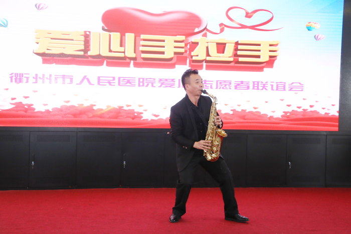 “浙西薩克斯王子”美稱的鄭新華老師應(yīng)邀為志愿者們獻(xiàn)上薩克斯獨(dú)奏《歌聲與微笑》