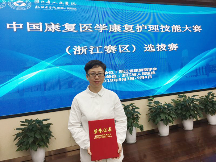 康復(fù)科護(hù)士柴文娟在浙江省首屆康復(fù)護(hù)理技能大賽中獲個(gè)人技能三等獎(jiǎng)