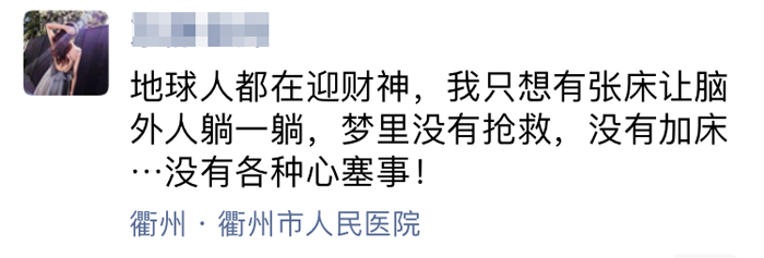 從除夕到大年初五,神經(jīng)外科、呼吸內(nèi)科、重癥監(jiān)護(hù)中心等病區(qū)的病床每天都是滿員。所有醫(yī)護(hù)人員隨時待命,輪流守護(hù)在患者身邊。他們不僅要時刻監(jiān)控患者病情的變化,還要承擔(dān)起陪護(hù)工作。