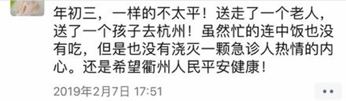 春節(jié)歷來是醉酒、車禍、心梗、中風(fēng)、魚刺卡喉等突發(fā)情況的高發(fā)期,衢醫(yī)人的日歷上從來沒有節(jié)日,他們分秒必爭,與時間賽跑。