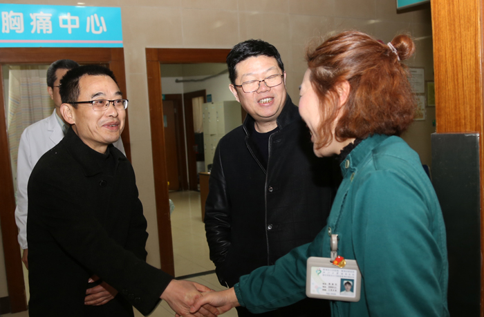 “新年好,辛苦了!”在急診科,姚宏平和醫(yī)護人員握手并親切交談,詳細詢問工作情況??吹酱蠹页瘹馀畈⒕耧枬M,他鼓勵廣大干部職工在新的一年里,繼續(xù)發(fā)揚團結(jié)合作的精神,不斷提升工作水平,提高服務(wù)質(zhì)量,以飽滿的精神狀態(tài)和嚴謹?shù)墓ぷ髯黠L(fēng),團結(jié)進取、扎實工作、再接再厲,力爭2019年各項工作再上新臺階,為群眾的生命健康保駕護航,為實現(xiàn)“大健康”發(fā)展的美好愿景添磚加瓦。