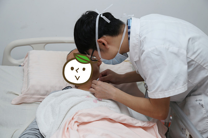 考慮到高先生情況特殊,來一次醫(yī)院不容易,神經(jīng)外科醫(yī)務(wù)人員聯(lián)合康復(fù)科護士頂著烈日來到高先生家中提供診療服務(wù)。