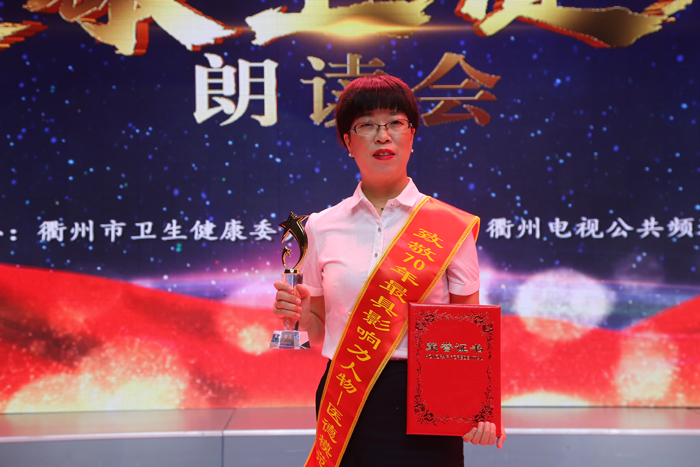 為慶祝中華人民共和國(guó)成立70周年,生動(dòng)反映全市衛(wèi)生健康事業(yè)取得的新進(jìn)展,進(jìn)一步弘揚(yáng) “敬佑生命、救死扶傷、甘于奉獻(xiàn)、大愛(ài)無(wú)疆”的精神風(fēng)貌。9月25日晚,衢州市衛(wèi)健委舉行“衢州市衛(wèi)生健康系統(tǒng)最具影響力衛(wèi)健人”表彰大會(huì),我院院長(zhǎng)葉金林、前任院長(zhǎng)陳震宏榮獲“衢州市最具影響力衛(wèi)健人——醫(yī)改先鋒”榮譽(yù)稱號(hào),耳鼻咽喉科主任蘭金山、門急診護(hù)士長(zhǎng)邵微穎榮獲“衢州市最具影響力衛(wèi)健人——醫(yī)德模范”榮譽(yù)稱號(hào),心血管內(nèi)科主任醫(yī)師俎德玲榮獲“衢州市最具影響力衛(wèi)健人——健康衛(wèi)士”榮譽(yù)稱號(hào)。