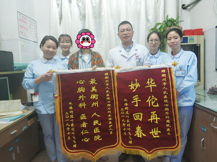 葉女士送上錦旗感謝醫(yī)護人員的救命之恩