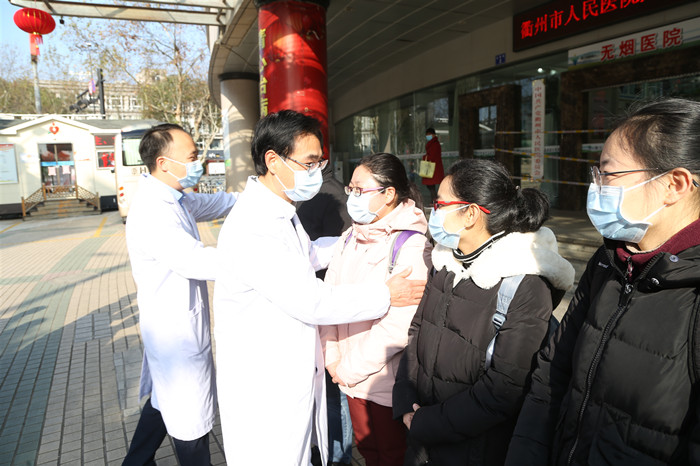 “一線防治工作任務(wù)重、風(fēng)險(xiǎn)大,作為衢州市馳援武漢的32名醫(yī)護(hù)之一,希望你們和第一批馳援武漢的醫(yī)護(hù)加強(qiáng)交流,相互幫助。抗疫成功,我們帶著鮮花,迎接你們凱旋!” 院長(zhǎng)葉金林為出征醫(yī)護(hù)人員加油鼓勁。