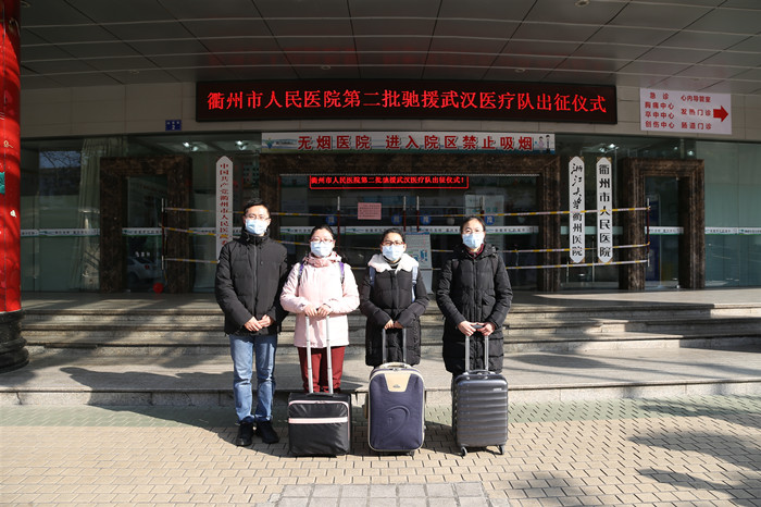 “不畏困難、不畏艱險(xiǎn)、主動(dòng)請(qǐng)戰(zhàn),你們是衢州市人民醫(yī)院的驕傲,為你們自豪!”出征儀式上,院黨委書記徐天才說,“奔赴武漢,希望你們做好自我防護(hù)的同時(shí)積極做好救治工作,團(tuán)結(jié)一致、服從安排、相互支持,攻克難關(guān),希望4名醫(yī)護(hù)人員堅(jiān)守防疫一線,順利完成馳援任務(wù),平安歸來!”