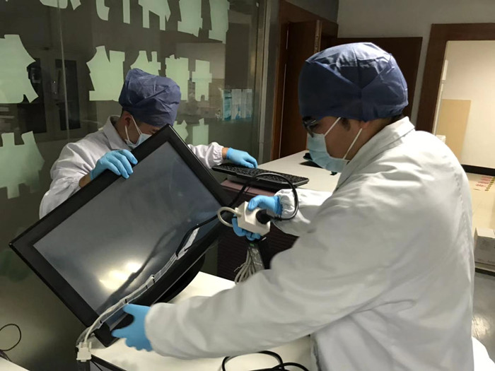 緊鑼密鼓籌備浮石院區(qū)臨時實(shí)驗(yàn)室,保障標(biāo)本在第一時間得到化驗(yàn),設(shè)備處的工程師進(jìn)行儀器調(diào)配、安裝、調(diào)試,確保檢驗(yàn)設(shè)備正常運(yùn)轉(zhuǎn)。