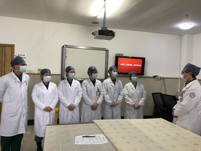 “生命重于泰山,疫情就是命令,防控就是責(zé)任。在這場沒有硝煙的戰(zhàn)爭面前,共產(chǎn)黨員沖在第一線……”徐天才書記宣布成立分院應(yīng)急病區(qū)臨時黨支部!