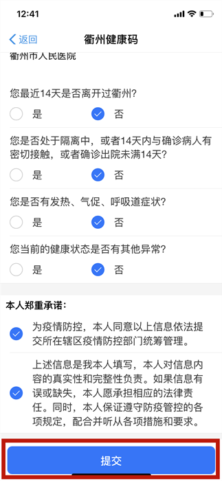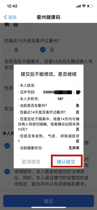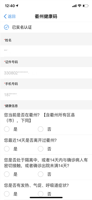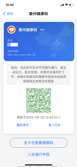 5、生成相應(yīng)顏色的衢州健康碼