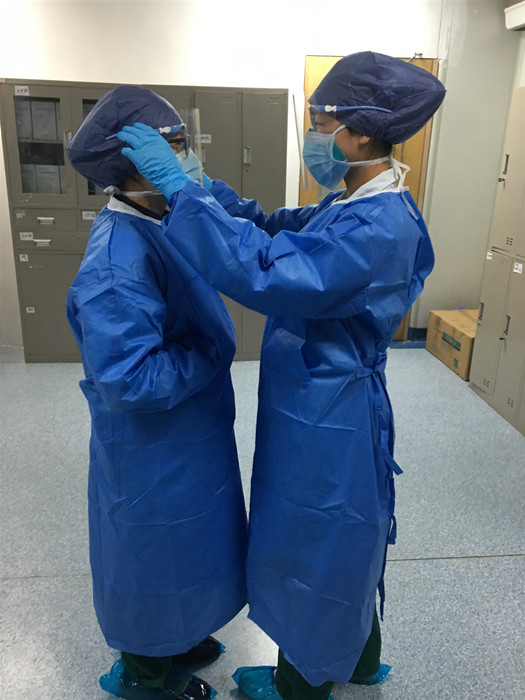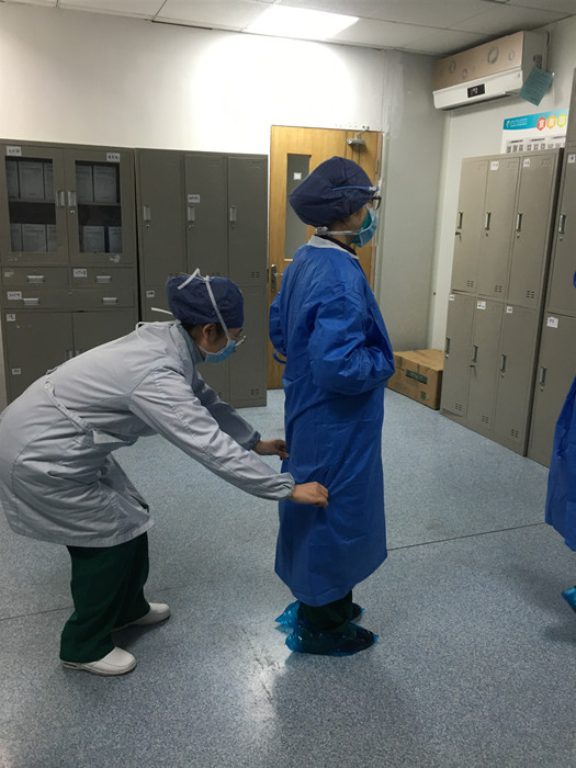 進(jìn)入隔離留觀病房前,相互檢查防護(hù)穿戴