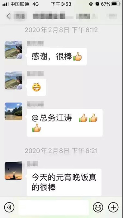 在“隔離病房后勤保障”微信群里,經(jīng)常看到江濤“碎碎念”:最近的飲食合胃口嗎?護(hù)士長,新采購的這款鞋子合適嗎?洗好的衣服已經(jīng)打包了,記得拿!白色的袋子在里面,紅色的袋子在外面,不要忘記!……得知隔離病房護(hù)士周仙霞女兒生日買不到蛋糕,江濤第一時間協(xié)調(diào)解決。一件件事雖小,卻在隔離病房醫(yī)護(hù)群里傳為美談,為他的認(rèn)真負(fù)責(zé),為他的善解人意。