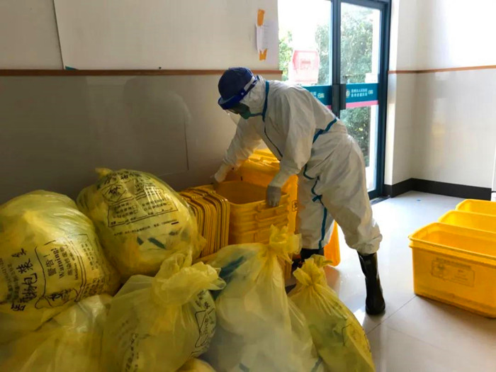 李師傅進(jìn)入隔離病房后,先完成醫(yī)護(hù)人員區(qū)域的衛(wèi)生保潔,整理垃圾、配置消毒液、清掃地面;而后穿戴好防護(hù)用品,進(jìn)入隔離病房開始用物清潔、患者床單消毒……每天凌晨5點(diǎn),就能看到李師傅忙碌的身影。