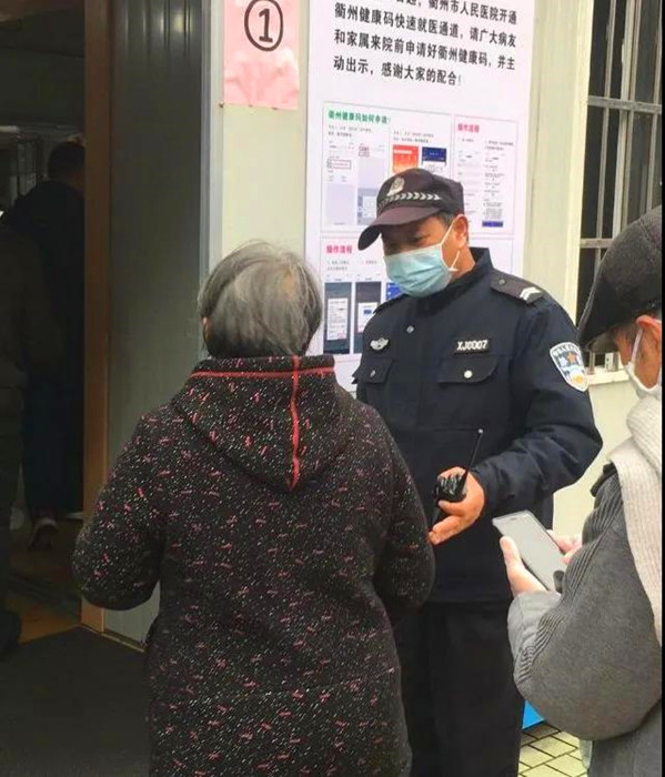 上午是就診高峰期,門診人流量大,患者和家屬進(jìn)入院區(qū)必須出示健康碼,測量體溫。此時,保安師傅錢海福正在有序地指引患者和家屬進(jìn)入院區(qū)。遇到老人、小孩、孕婦,就引導(dǎo)他們優(yōu)先進(jìn)入,并耐心地給他們講解就診流程。