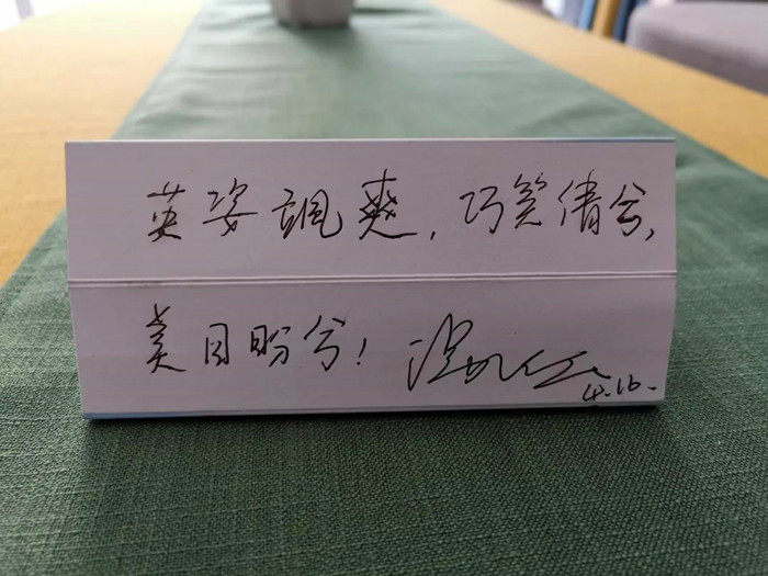 市長(zhǎng)湯飛帆在凱旋的桌牌上留言祝福