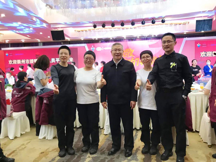 “你們是主角,這個(gè)春天,衢州最好的消息就是你們52名可愛(ài)的醫(yī)護(hù)人員一個(gè)都不少,完好無(wú)損,平安凱旋?!?月16日,在衢州市援鄂英雄歡迎儀式上,市委書記徐文光動(dòng)情地說(shuō)。我院兩批9名援鄂醫(yī)護(hù)人員徐小華、鄭慧瑾、趙凱旋、余娜、方文浩、柴東劍、王莉娟、徐慧、王鈺參加本次儀式,和全市可愛(ài)的援鄂醫(yī)護(hù)人員一起,受到衢州市委市政府四套班子領(lǐng)導(dǎo)的熱烈歡迎和崇高敬意。