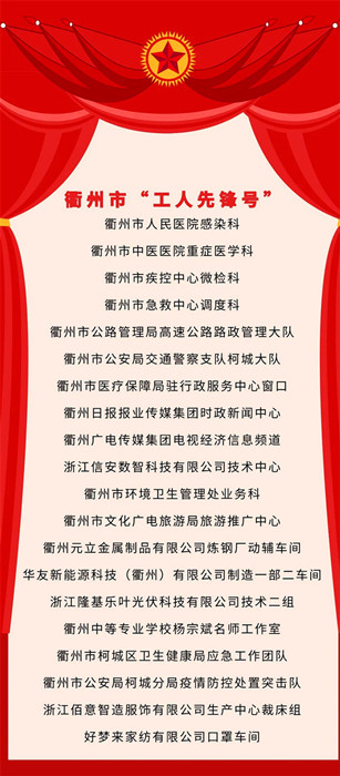 為激勵先進,弘揚正能量,衢州市總工會命名我院感染科等40個先進集體為衢州市“工人先鋒號”。