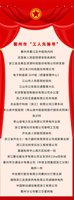 我市40個先進集體被命名為衢州市“工人先鋒號”