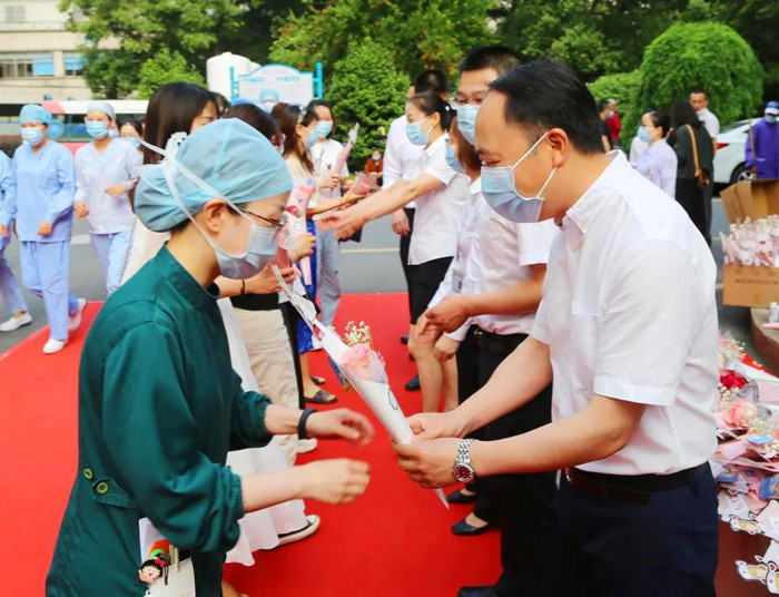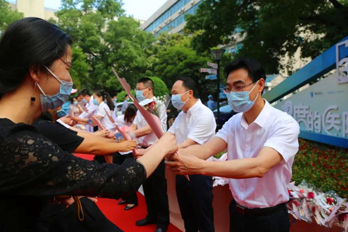 “疫路有你,致敬最美天使”清晨,在黨委書記徐天才,黨委副書記、院長(zhǎng)葉金林的帶領(lǐng)下,八位院領(lǐng)導(dǎo)齊齊集結(jié),早早等候在院區(qū)迎接衢醫(yī)天使的到來?!肮?jié)日快樂”“你們辛苦了”第一時(shí)間向戰(zhàn)斗在一線的白衣天使送上鮮花,送上最誠(chéng)摯的祝福。