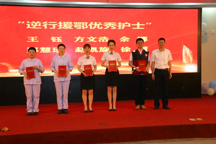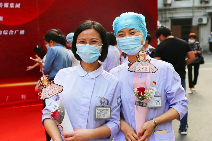傍晚,一場(chǎng)以“‘疫’路有你,致敬最美天使” 為主題的5·12國(guó)際護(hù)士節(jié)暨表彰抗疫英雄慶祝活動(dòng)在醫(yī)院舉行。市衛(wèi)健委領(lǐng)導(dǎo)、院領(lǐng)導(dǎo)班子成員、職能部門負(fù)責(zé)人以及護(hù)士代表參加。