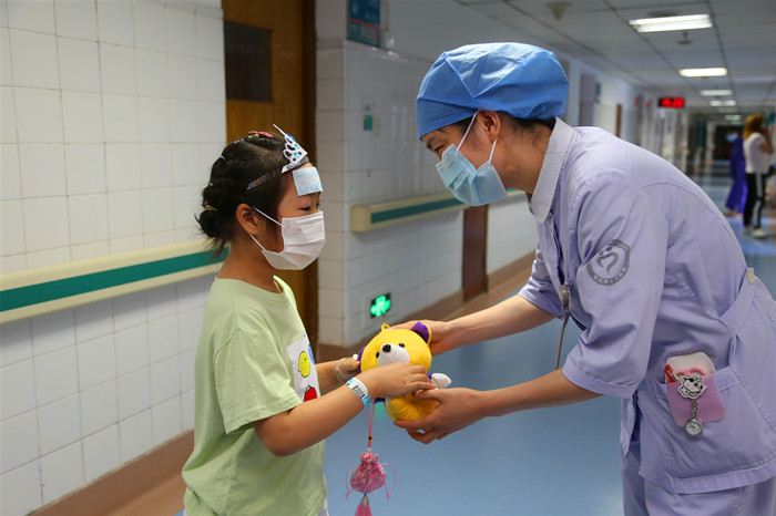 “六一”兒童節(jié),衢州市人民醫(yī)院兒科護士給住院小患者送上了節(jié)日的祝福。為了讓孩子們養(yǎng)成良好的衛(wèi)生習(xí)慣,當天,兒科護士還為他們帶去了生動的新冠肺炎防護科普,教小朋友學(xué)習(xí)如何正確佩戴口罩、正確洗手,讓他們度過了一個難忘的節(jié)日。