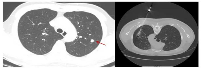 CT引導(dǎo)下肺穿刺活檢,8毫米肺結(jié)節(jié)排除肺癌可能