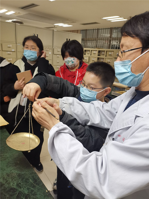 活動現(xiàn)場,同學(xué)們還體驗了一回“中藥師”的工作,紛紛拿起秤桿,學(xué)習(xí)稱量中藥。
