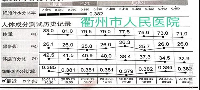 張女士原先體重166斤,來(lái)到我院營(yíng)養(yǎng)科就診,在詳細(xì)了解飲食搭配、運(yùn)動(dòng)方案、減肥效果、輕松度、是否反彈等方面的內(nèi)容后,最終下定決心減肥。定期到營(yíng)養(yǎng)科門(mén)診復(fù)測(cè)體重,在高靜副主任引導(dǎo)和營(yíng)養(yǎng)師一對(duì)一的指導(dǎo)下,每半個(gè)月復(fù)測(cè)效果,堅(jiān)持了5個(gè)月,收效顯著,張女士很滿意,直呼:“瘦下來(lái)不是夢(mèng)!”